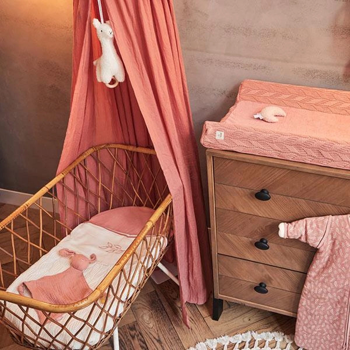 Voor een 2 in 1 verpakking heb je keuze uit effen roze, caramel, nougat, grijs en groen. Daar zit vast een kleur tussen die matcht met de lakens, dekens en het interieur van de babykamer.