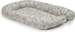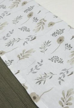 Dit laken lijkt wel een romantische bloementuin met de all over bloemenprint in roze, groen en caramel en combineert door deze meerkleurigheid met zoveel effen dekens. Ook combineert dit geweldig met de vintage sluiers en klamboes.