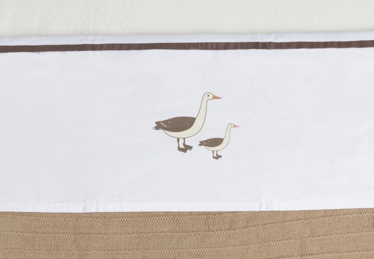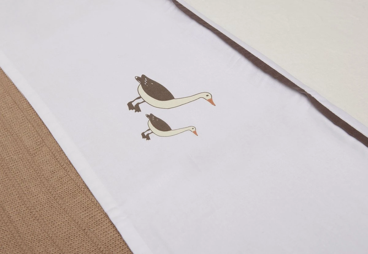 Ledikant lakentje met schattige gansjes. De zijkanten van het lakentje kun je onder het matrasje stoppen voor een extra veilig en geborgen gevoel. Je matcht dit lakentje met het schattige slaapzakje met gansjes. Style de kamer helemaal af met een biscuit kleurig hoeslaken en een klamboe in de matchende kleur.
