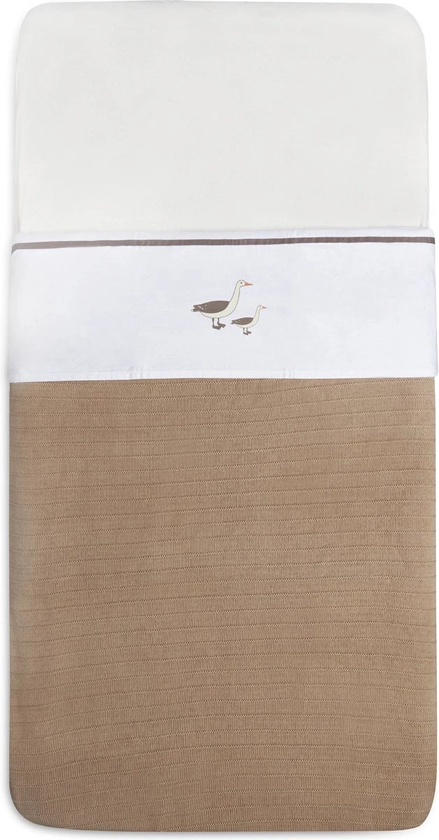 Het Goose thema is vrolijk met zijn schattige witte gansjes op een neutrale achtergrond van nougat of biscuit. In het thema vind je naast de lakentjes ook slaapzakjes van heerlijke stretchy jersey met een TOG-waarde van 0.5. Goose is een perfecte match met Pointelle dekentjes of Pure Knit dekentjes van Jollein.