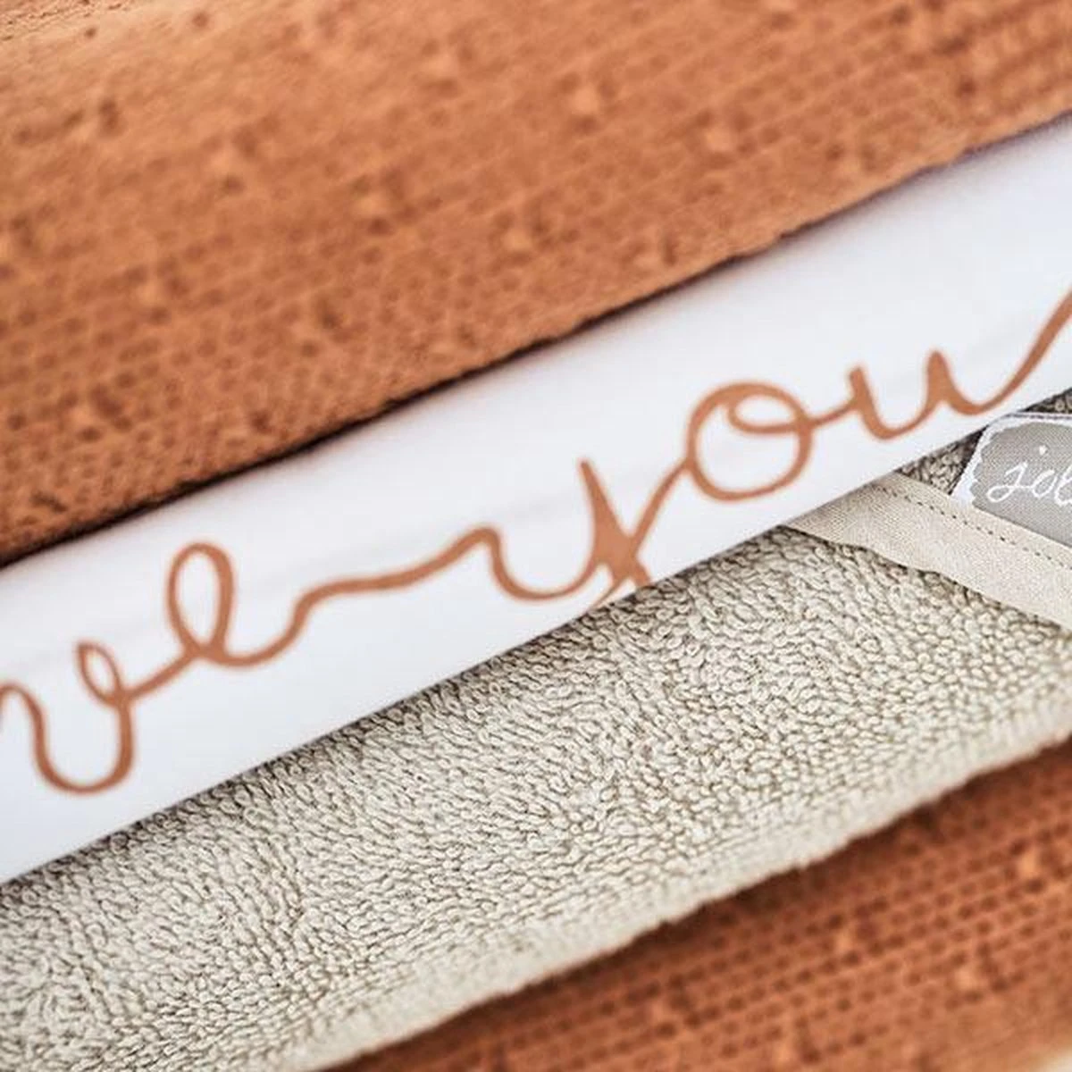 In alle gevallen is het laken wit, de opdruk is in zes verschillende kleuren verkrijgbaar: karamel bruin, grijs, lila, nougat creme, roze en stone green. Doordat je kunt kiezen uit zes verschillende kleuren kun je er altijd een deken bij vinden die er bij past.