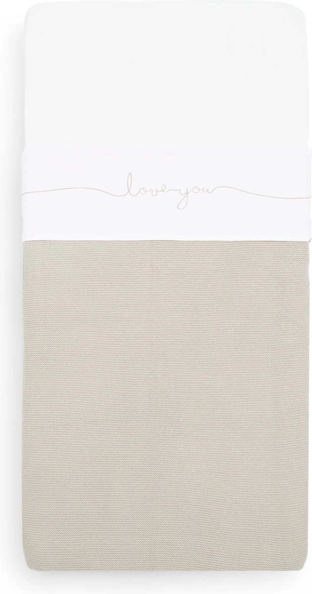 Met een wit lakentje kun je het bedje van jouw baby veilig, kort en strak opmaken. Door de zijkanten van het lakentje onder het matrasje te stoppen, slaapt jouw kleintje niet alleen veilig, maar heeft het ook een geborgen gevoel. Dit lieve lakentje met de tekst ‘love you’ past perfect bij de dekens uit het Basic knit thema en het Bliss knit thema van Jollein.