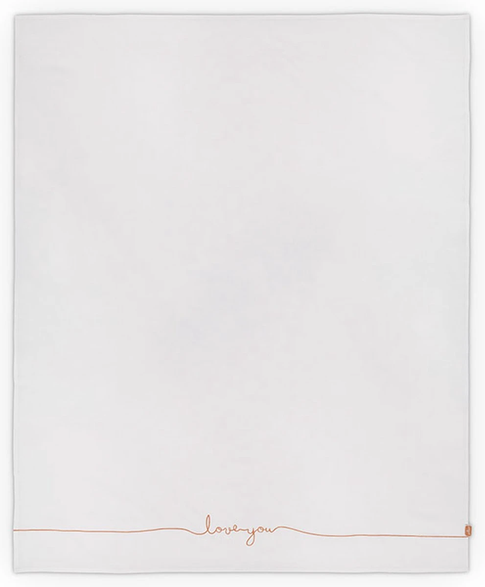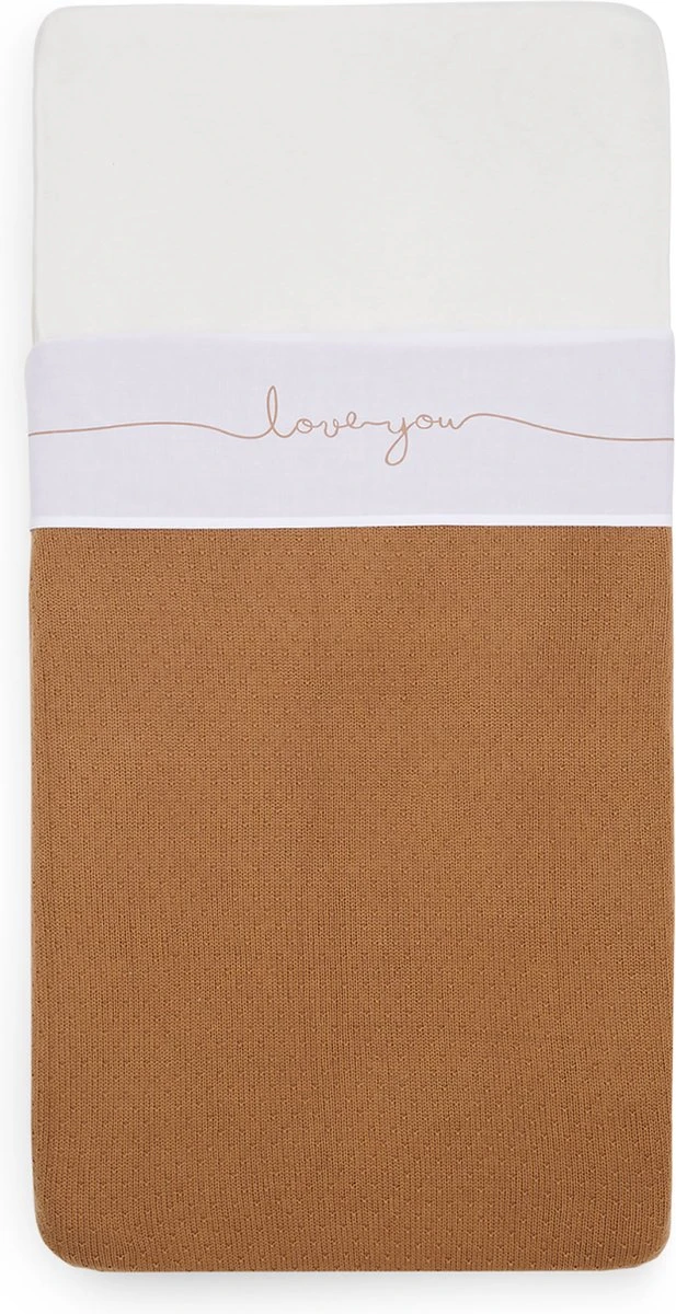 Met een wit lakentje kun je het bedje van jouw baby veilig, kort en strak opmaken. Door de zijkanten van het lakentje onder het matrasje te stoppen, slaapt jouw kleintje niet alleen veilig, maar heeft het ook een geborgen gevoel. Dit lieve lakentje met de tekst ‘love you’ past perfect bij de dekens uit het Basic knit thema en het Bliss knit thema van Jollein.
