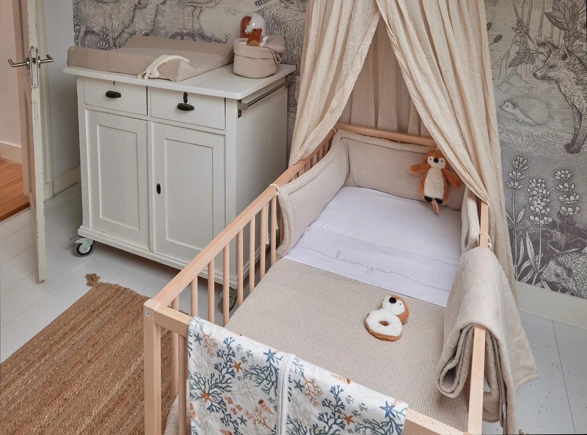 Het laken past met afmeting 75×100 cm in een wieg of kinderwagen. Het is ook in groter formaat verkrijgbaar voor een ledikant.