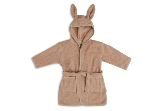 Verkrijgbaar in zes trendy kleuren. Shop het badstof badjasje in roze, caramel, nougat, grijs, groen, biscuit en blauw