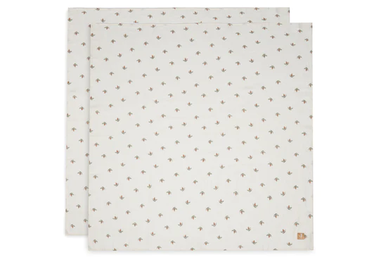 De hydrofiele doeken zijn 115×115 cm cm en zitten in een handige 2-pack.