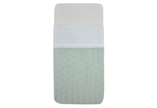 Het laken past met afmeting 75×100 cm in het wiegje. Ook een slag groter verkrijgbaar, in het formaat 120×150 cm welke perfect in het ledikantje past.