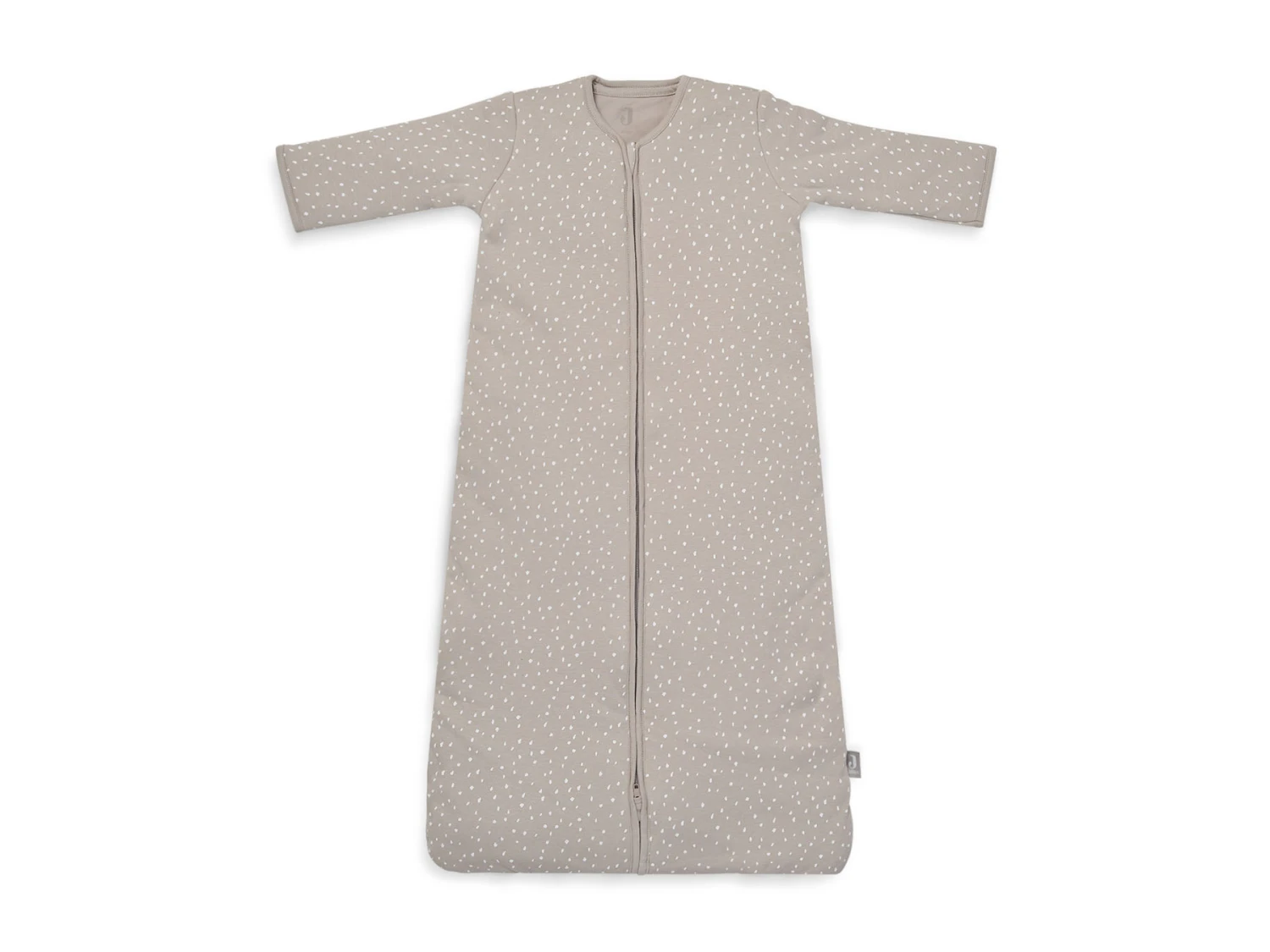 Deze slaapzak heeft een rustige stippenprintje in twee kleuren. Ga je voor de Nougat of voor de grijze variant?