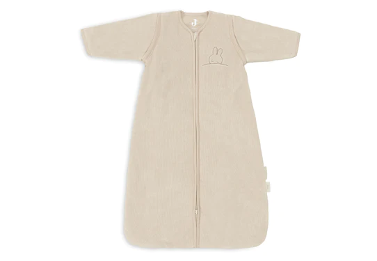 Hallo Nijntje! Deze heerlijke badstof slaapzak is ultra zacht en zeer comfortabel om in te slapen. De slaapzak is zeer neutraal dankzij de effen kleur met een slapende Nijntje geborduurd op de borst. Heb jij ook een vaste avondroutine met je kleintje? Een verhaaltje lezen voor het slapengaan of een liedje zingen, slaapzak aan en tijd om te slapen? Deze ultrazachte babyslaapzak heeft uitneembare mouwen. Zo kun je het transformeren van een TOG-waarde van 3,0 op koude winterdagen naar een TOG-waarde 2,0 voor koele nachten in het voor- en najaar. Een slaapzak geeft je baby een gevoel van veiligheid, zorgt voor warmte en beperkt zijn bewegingen. Precies wat je nodig hebt met je actieve rakker. Is de slaapzak niet warm genoeg? Je kunt het perfect combineren met de dekens uit de Nijntje collectie bij Jollein. Koop deze cutie in Nougat of Olive Green in de maten 70, 90 en 110 cm.