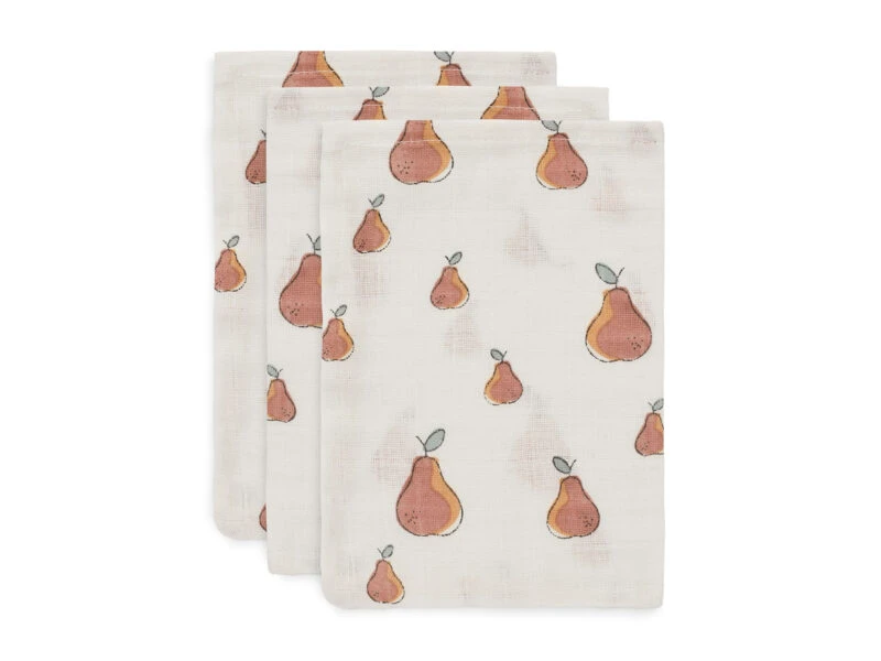 Combineer deze trendy fruitprint van deze hydrofiele washandjes met de andere hydrofiele items uit het Pear thema van Jollein. En je kunt nog verder met de gebreide dekens van het Bliss en River Knit thema en een slaapzak met Pear perzikjes print allover. Bekijk de uitgebreide collectie.