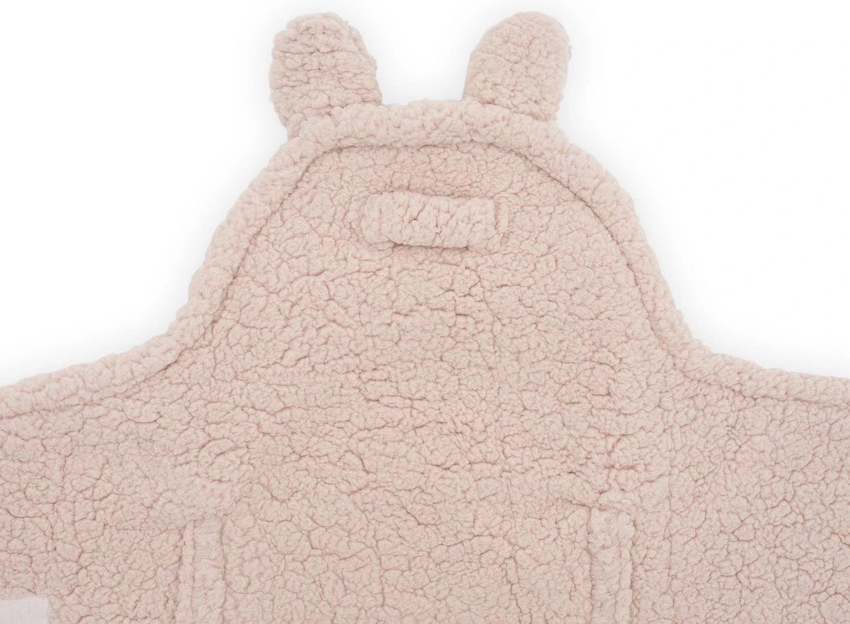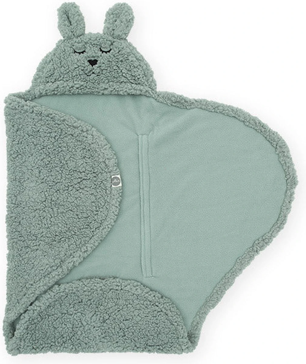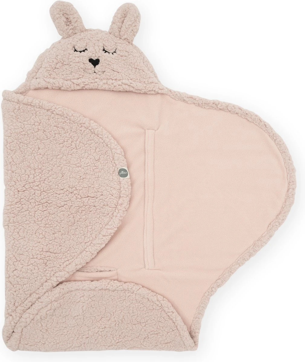 Wikkel je baby in deze omslagdoek en sluit de deken met de praktische klittenbandstroken. Zet het mutsje erbij op en zie daar, die schattige oortjes en dito konijnengezichtje op het mutsje. Echt te lief!